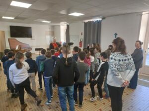 Depuis le 22 janvier, et à raison d’une séance par mois, les enfants travailleront la danse et le chant avec l’ensemble de musique baroque des Arts Florissants du Sud Vendée (infos sur www.arts-florissants.com). Ce travail se fera avec l’intervention de professionnels et aboutira à une représentation au mois de mai.